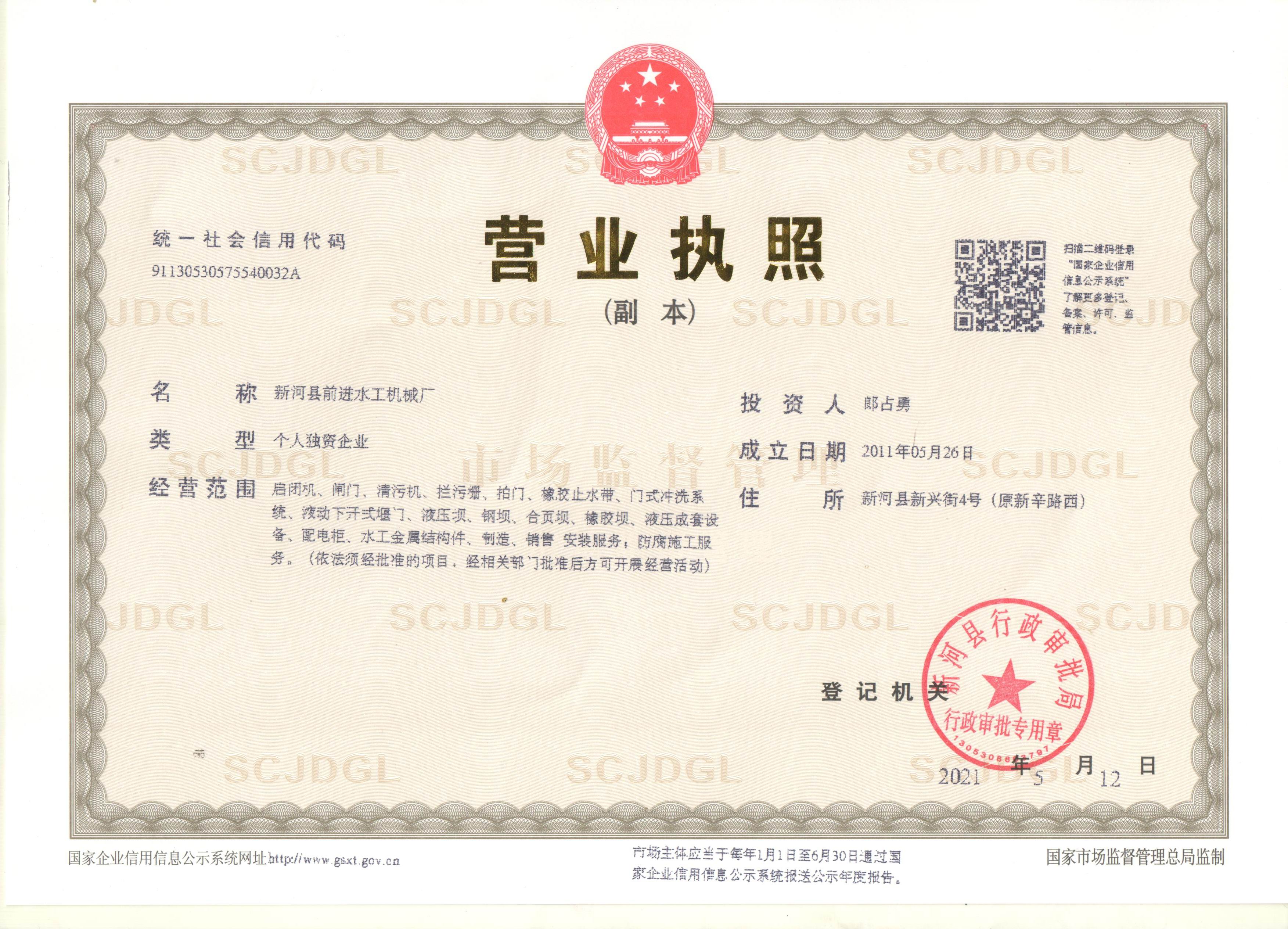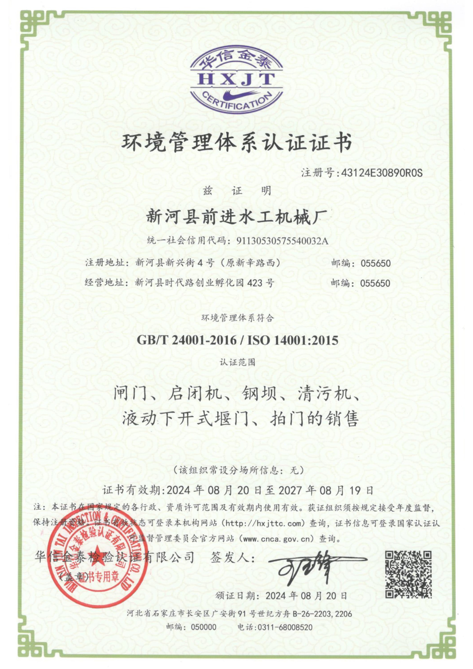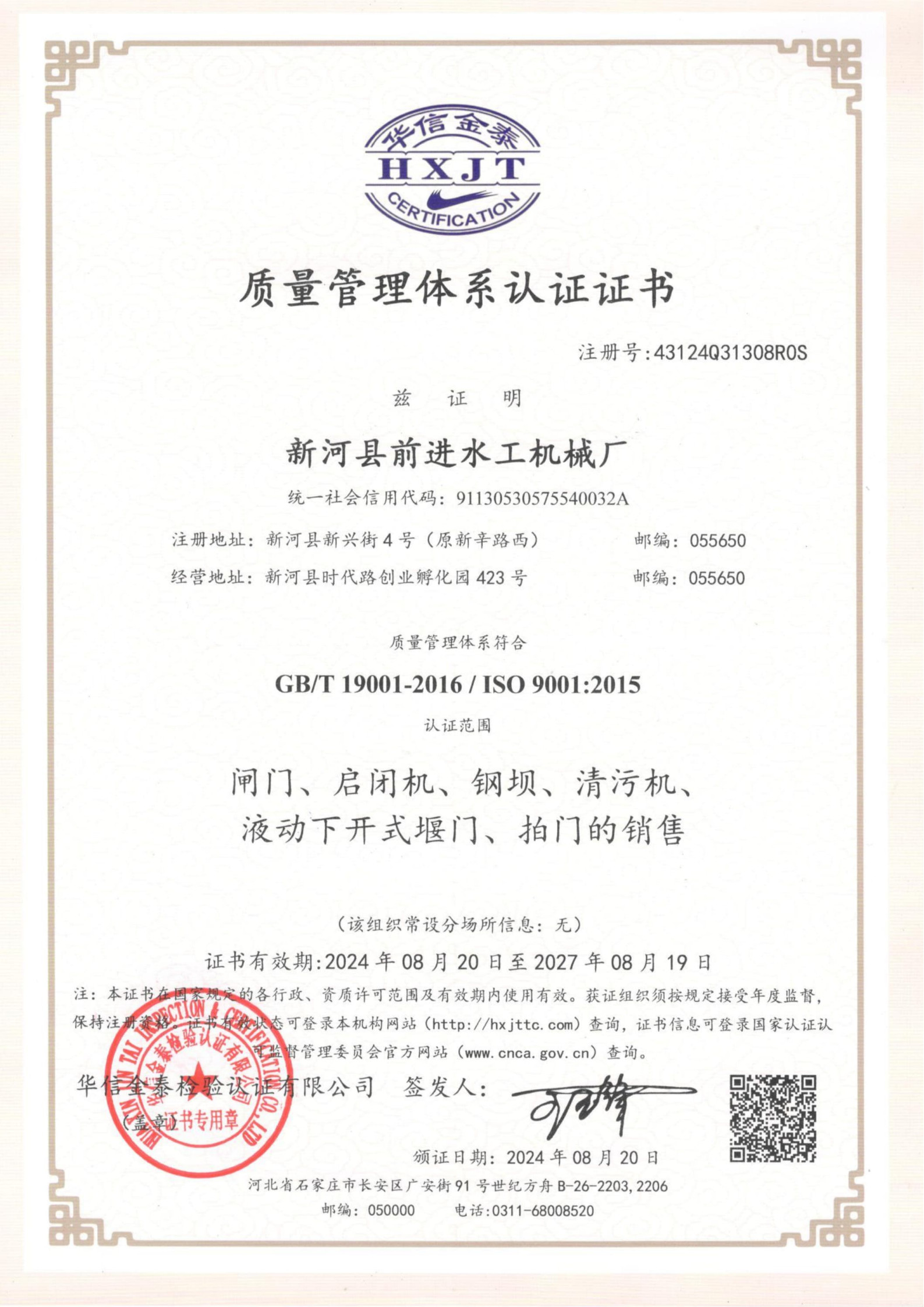 新河縣前進水工機械廠是一家專門從事水利工程設備研發(fā)生產(chǎn)的廠家,現(xiàn)有員工228人,各類高、中級專業(yè)工程技術(shù)人員近30人,技術(shù)生產(chǎn)工人180多人。公司占地面積14674平方米。公司擁有車、鉗、刨、銑、冷作、鈑金、鑄造等,工種齊全,加工能力和技術(shù)力量雄厚,并具備理化測試手段與儀器設備。前進水工專注景觀閘門,鋼壩,合頁壩,液壓升降壩,液壓閘門,臥倒門,一字門,人字門,液壓啟閉機,卷揚啟閉機,螺桿啟閉機,清污機,除污機,閘門,拍門等設備的研發(fā)與生產(chǎn),是新河水利工程產(chǎn)品行業(yè)的領跑者,不僅在同行業(yè)群中揭起了一次又一次的技術(shù)革新,更為水利工程企業(yè)提供了更高更大的選擇平臺。